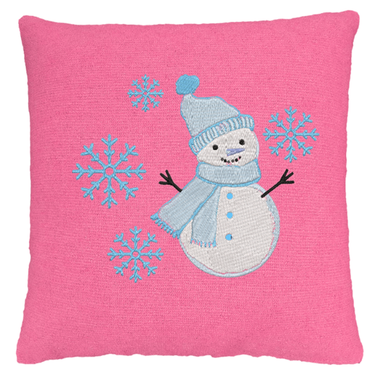 Embroidered Snowman & Snowflake Winter Pillow – 24" x 24"