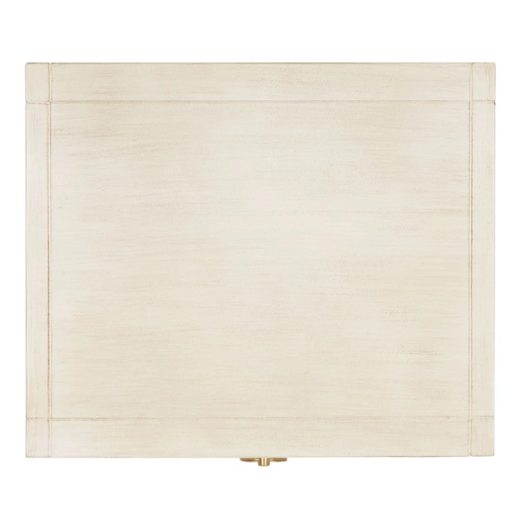 Blending timeless charm with modern elegance, this ivory vintage chest-style nightstand brings character and function to your space. Crafted with a kiln-dried solid acacia wood frame, it features a sleek rectangular silhouette set atop a distinctive cross-base for an airy, elevated look. The gold-finished drawer pull adds a touch of sophistication, while the single spacious drawer keeps nighttime essentials neatly tucked away. Perfect for pairing with both classic and contemporary bedroom décors, this nightstand makes a versatile and stylish accent.