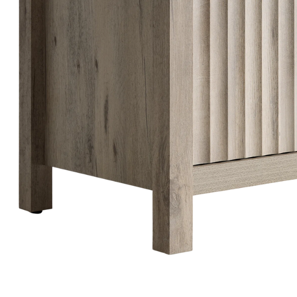 Bring both style and practicality to your bedroom with this 2-piece nightstand set, finished in a sophisticated Light Greige Oak that highlights the natural wood grain. Featuring fluted-patterned drawer fronts and a sleek modern silhouette, these nightstands add texture and elegance to any space.