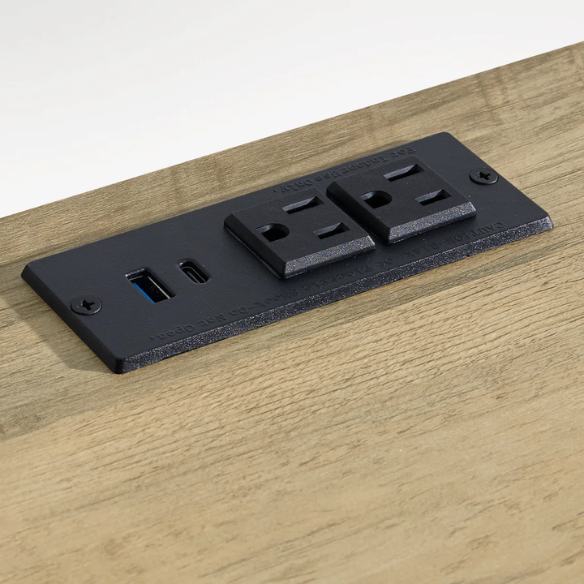 Built-in charging station with 2 AC outlets, 1 USB, and 1 USB-C port