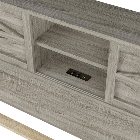 3-Piece Farmhouse Queen Bedroom Set – Platform Bed with Sliding Door Storage Headboard and Charging, Nightstand, and Dresser – Modern Design with Ample Storage