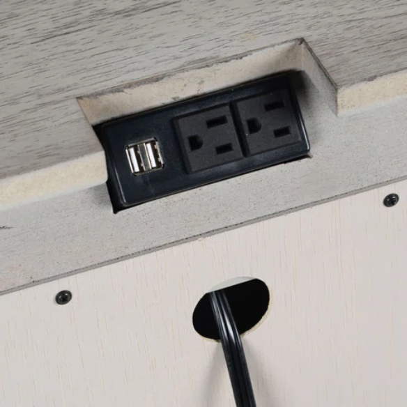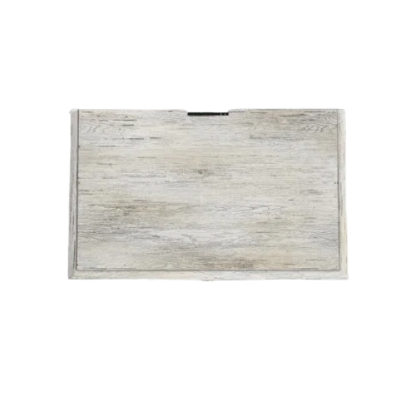 Rustic off-white finish with multi-step distressing for a farmhouse-inspired look