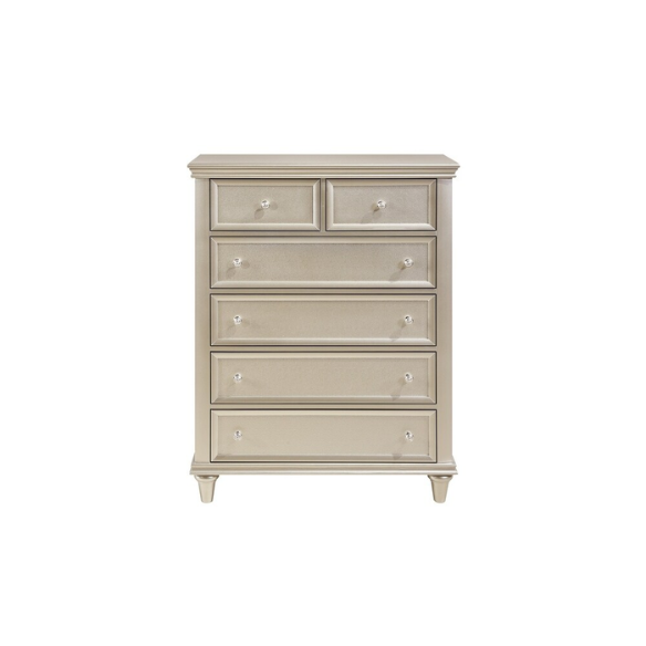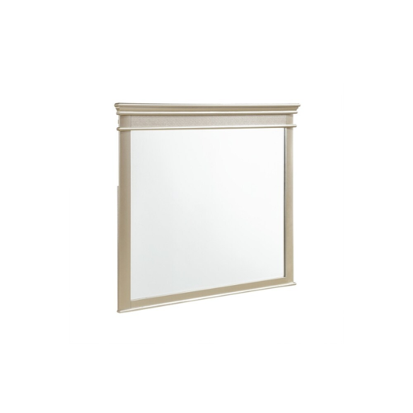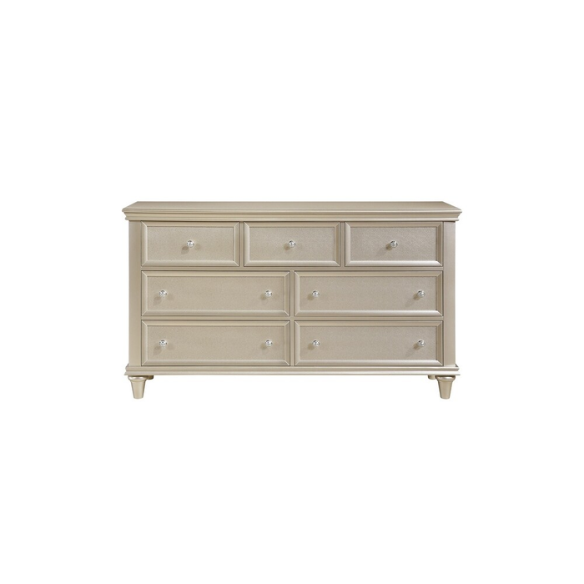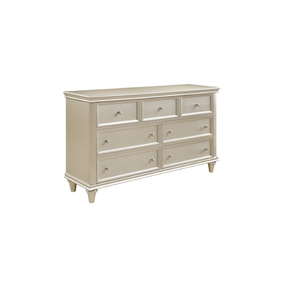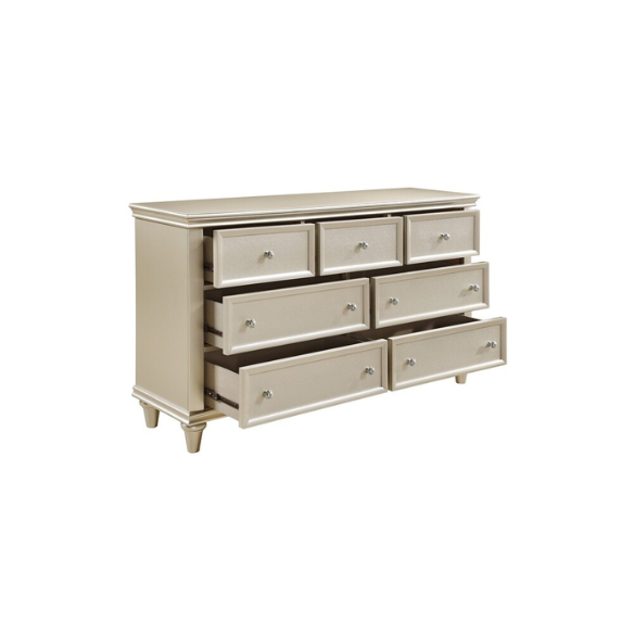 The matching dresser and mirror continue the elegant aesthetic, with polished knob hardware that gleams against the silver backdrop. Crafted from wood and engineered wood, this set delivers both durability and style, making it a stunning focal point for any contemporary or transitional bedroom.