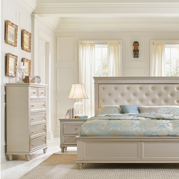 Transform your bedroom into an elegant retreat with this silver queen set, designed to deliver both beauty and lasting comfort.