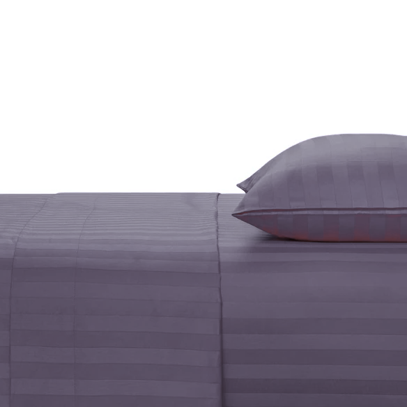 Transform your bedroom with the Purple Dreams Sheet Set, crafted from 100% premium cotton with a 300-thread count for soft, breathable, and luxurious comfort. The elegant striped damask sateen design adds subtle texture and sheen, elevating any bedroom décor. Deep-pocket fitted sheets with full elastic ensure a secure, wrinkle-free fit, while matching pillowcases complete the cohesive look. Machine-washable and durable, this sheet set makes everyday bedding effortless.