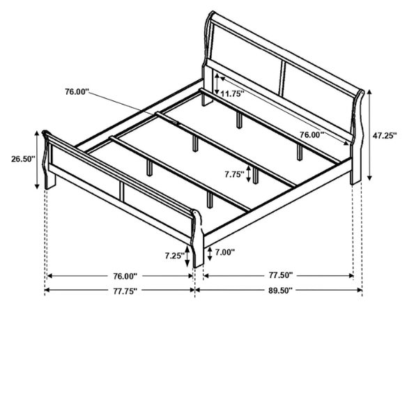 Bed (King): 47.25'' H x 77.75'' W x 84.5'' L