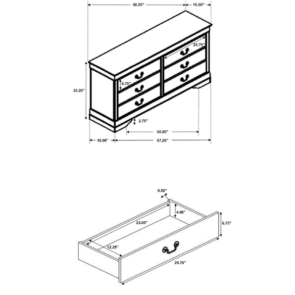Dresser: 33.5'' H x 58.25'' W x 15.75'' D