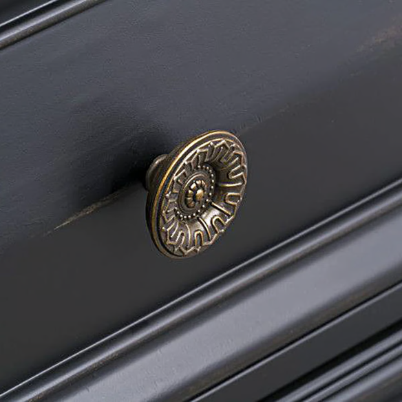 Purposeful Distressing – Subtle wood scoring and rub-through for a lightly weathered look in black.