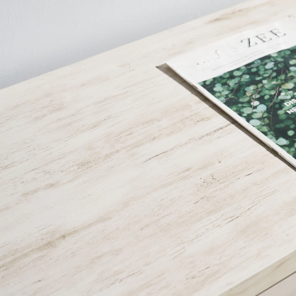 Rustic farmhouse design with a distressed rustic white finish