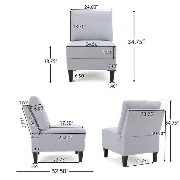 Armless Chairs: 33.00" D x 24.50" W x 35.50" H