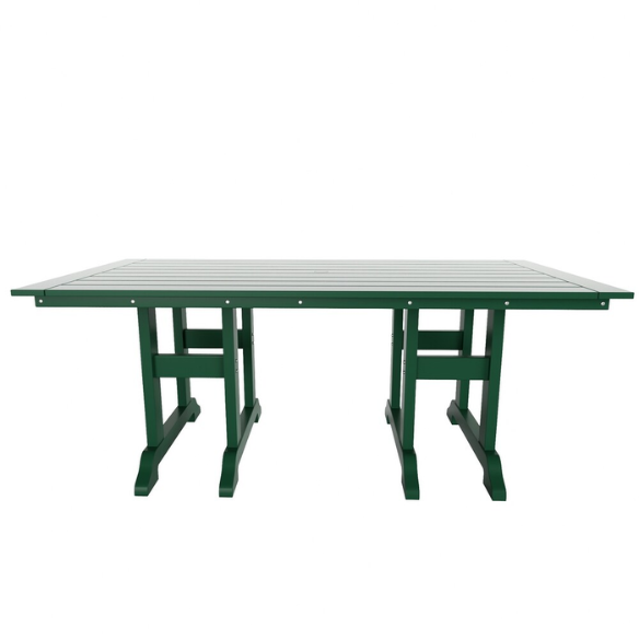 Transform your patio or garden into an inviting retreat with this 7-piece dark green outdoor dining set, designed for gatherings that blend comfort and timeless style. Built from eco-friendly, weather- and UV-resistant materials, this elegant set stands up beautifully to the elements while maintaining its rich, dark green finish. The rectangular dining table provides generous space for meals and conversation, while the six contoured dining chairs offer supportive, ergonomic comfort with curved backs, wide arms, and smooth waterfall fronts. Ideal for outdoor dining, casual get-togethers, or quiet evenings under the stars, this set elevates any space with lasting durability and sophistication.