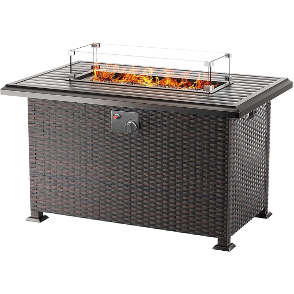 CSA-Certified Fire Pit Table (55,000 BTU): Features a dual-tube stainless steel burner for cleaner, stable combustion. Instantly create warmth and ambiance with a simple knob control.