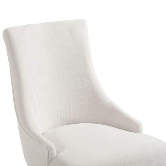 Bring refined farmhouse flair and contemporary comfort to your dining room with this set of two upholstered beige wingback dining chairs. Designed to strike the perfect balance between rustic charm and modern elegance, these chairs feature soft, durable fabric with a stylish two-tone palette and beautifully tapered black wooden legs. The classic wingback silhouette, welt trim accents, and subtly textured wood veneer frame elevate the aesthetic of any kitchen, dining space, or home office.