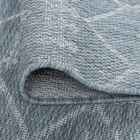 Boho-Inspired Greyish Blue & Ivory Geometric Rug – Fade & Stain-Resistant, Low-Pile, Perfect for High-Traffic Indoor/Outdoor Spaces