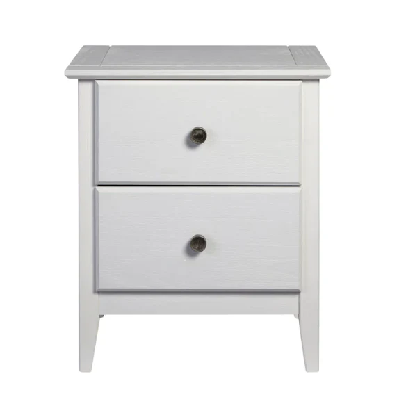 Crafted from 100% solid pine wood, the bed showcases a louvered headboard that adds subtle texture and charm. Finished in a bright, brushed white tone, this set creates an airy, inviting atmosphere that blends effortlessly with both modern and traditional décor. Built with sustainability in mind, the wood is sourced from renewable forests for an eco-friendly choice.