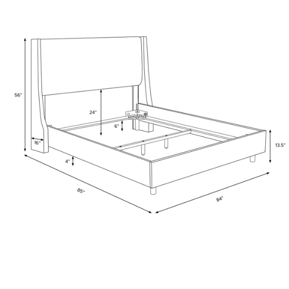 The tall wingback headboard showcases timeless button tufting, while the polished nailhead trim adds a touch of refined glamour. Built with a kiln-dried solid pine and reinforced metal frame, this bed is designed for durability and long-lasting support.
