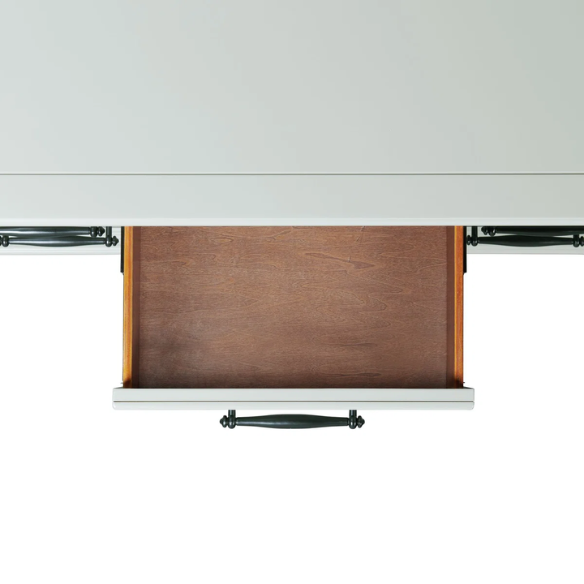 Functional Nightstand: Features 2 USB charging ports and felt-lined top drawers.