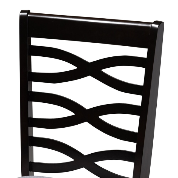 Chair Upholstery: Soft grey linen fabric with cushioned seats for comfort