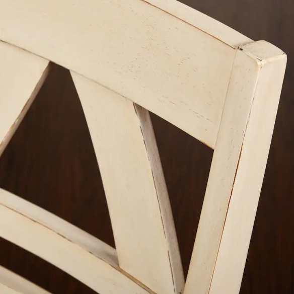 Country-Style 3-Piece Dining Set – Round Beadboard Table with X-Base and Geometric Back Chairs