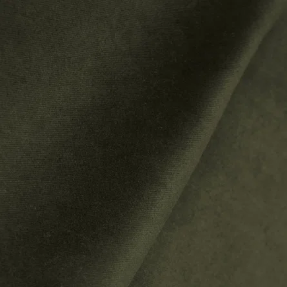 Sumptuous velvet in a deep, nature-inspired olive tone offers tactile comfort and visual richness. -
