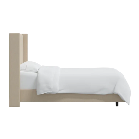 Ground your bedroom in classic charm with this light tan linen upholstered queen bed, designed to blend seamlessly into both modern and transitional interiors. The clean lines and gently flared wingback headboard add a tailored sophistication, while the light tan linen upholstery brings warmth, softness, and timeless elegance to your space.