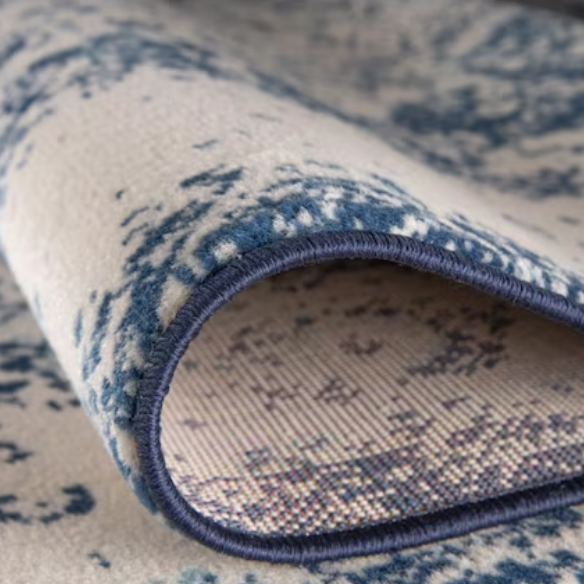 Distressed Oriental-Inspired Indoor Rug – Blue and White Medallion Pattern, Stain-Resistant, Fade-Resistant, Perfect for Traditional & French Country Décor
