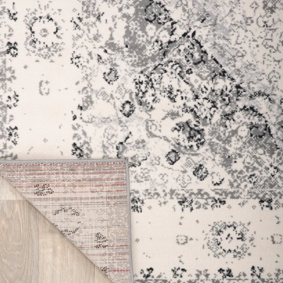 Distressed Oriental-Inspired Indoor Rug – Gray, Silver & Ivory Medallion Pattern, Stain-Resistant, Fade-Resistant, Perfect for Traditional & French Country Décor