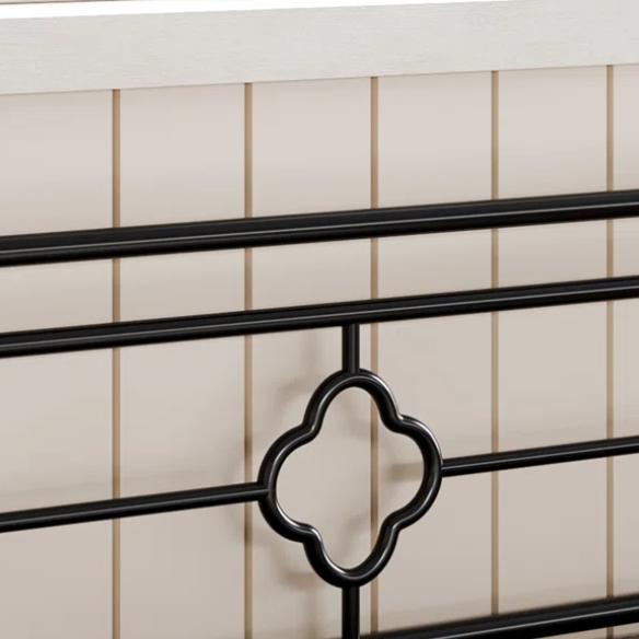 Upgrade your space with this black full-size Victorian-inspired metal bed frame—offering graceful styling, superior support, and under-bed storage that keeps your room tidy and your sleep, peaceful.