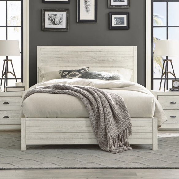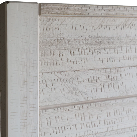 The White Queen Bedroom Set blends rustic craftsmanship with coastal elegance, creating a light and welcoming atmosphere. Its bright, airy finish complements a wide range of décor styles, making it the perfect centerpiece for a refreshing and timeless bedroom retreat.