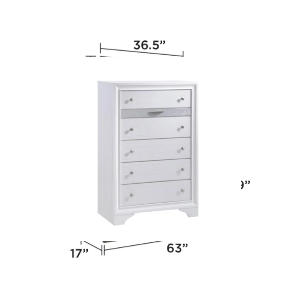 White Bedazzled Glam 5-Piece Full Bedroom Set – Sparkle Meets Sophistication