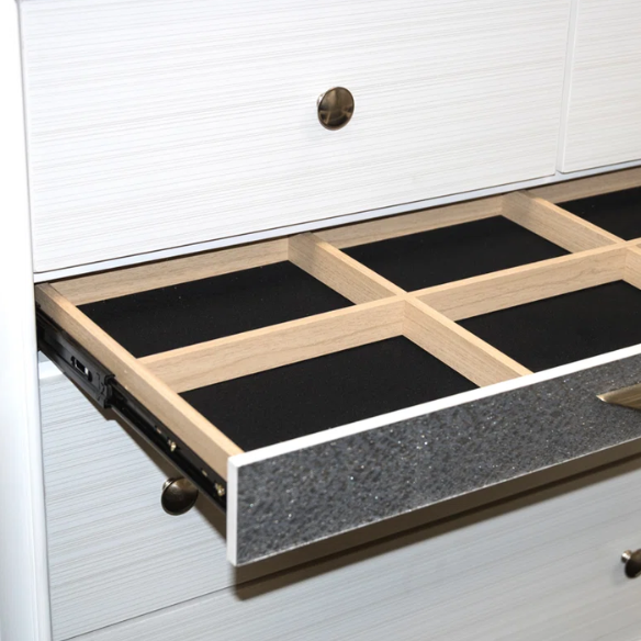 Elegant White Finish with Sparkle Accents – Creates a bright, glamorous, and versatile centerpiece for your bedroom.