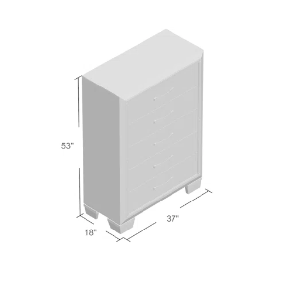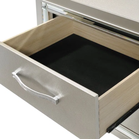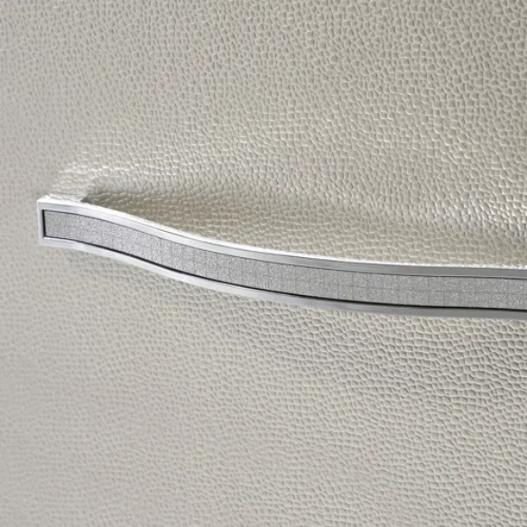 Elegant Glamour: 5-Piece Bedroom Set with Lustrous Platinum Dresser, Crystal and Chrome Handles – A Stunning, Star-Quality Collection to Elevate Your Bedroom Décor
