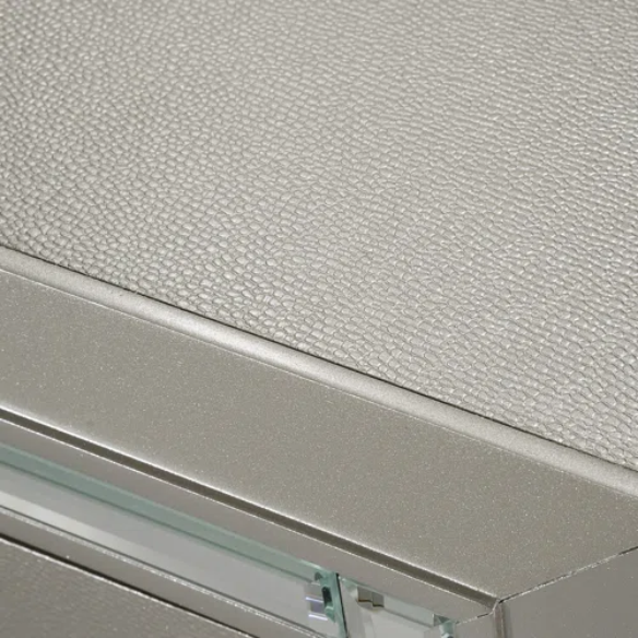 Transform your bedroom into a glamorous retreat with this Platinum King Bedroom Set, blending modern luxury with timeless elegance. Designed with a striking platinum finish and highlighted by sparkling crystal and chrome hardware, each piece brings shimmer and sophistication to your space.