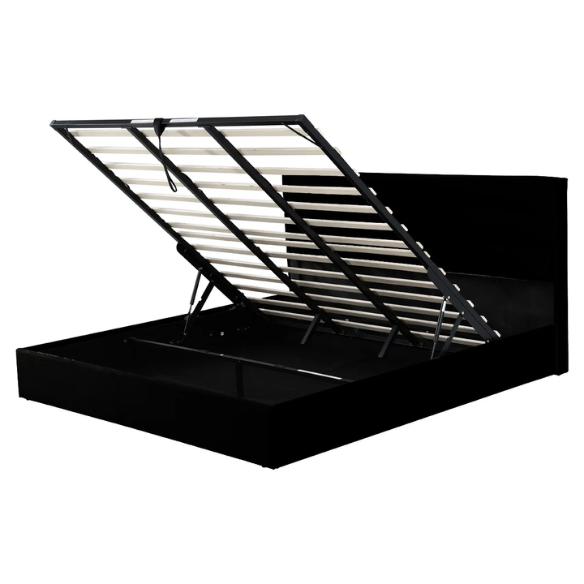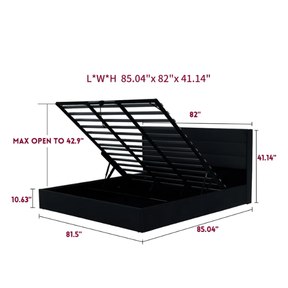 Beneath the bed, a lift-up storage compartment offers generous space to store bed linens, seasonal clothing, and accessories — perfect for keeping your room clutter-free. Designed with a bentwood slat support system, it promotes superior ventilation to keep your mattress fresh and comfortable, while eliminating the need for a box spring.