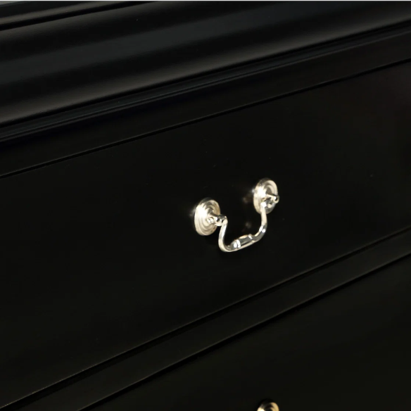 Create a bold and timeless centerpiece in your bedroom with the Black Full-Size Sleigh Bedroom Set. The sleek black finish highlights the graceful curves of the sleigh bed, adding a touch of modern sophistication while maintaining a classic charm. Inspired by traditional Louis-style design, this collection brings balance, elegance, and durability to your bedroom décor.