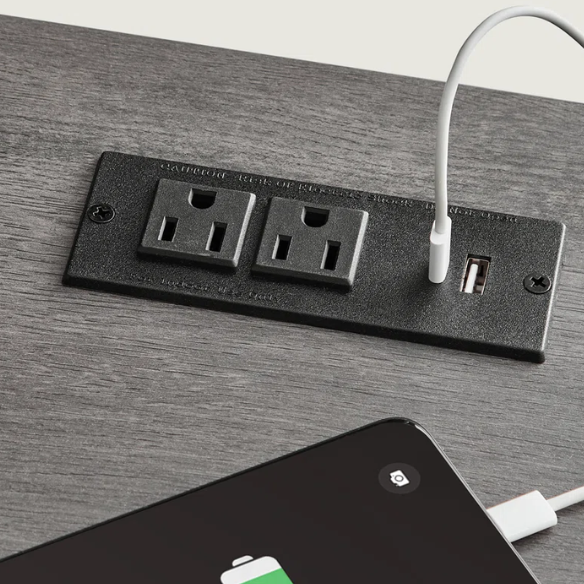Convenient Charging Station: Includes 1 USB-A port, 1 USB-C port, and 2 AC outlets.