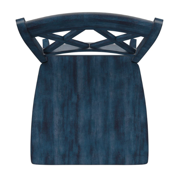 Add classic style and a bold pop of color to your dining room with this set of two X-Back wood dining chairs. Expertly crafted from durable, eco-friendly rubberwood, these chairs feature a gently contoured seat and an X-shaped backrest that blends farmhouse charm with timeless design. The rich navy blue finish adds a refined touch—perfect for coastal, traditional, or modern dining spaces.