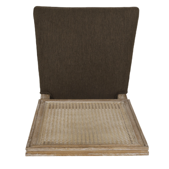 French Country Wood and Cane Upholstered Dining Chairs – Weathered Rubberwood Frame with Fluted Legs & Rectangular Cane Backrest