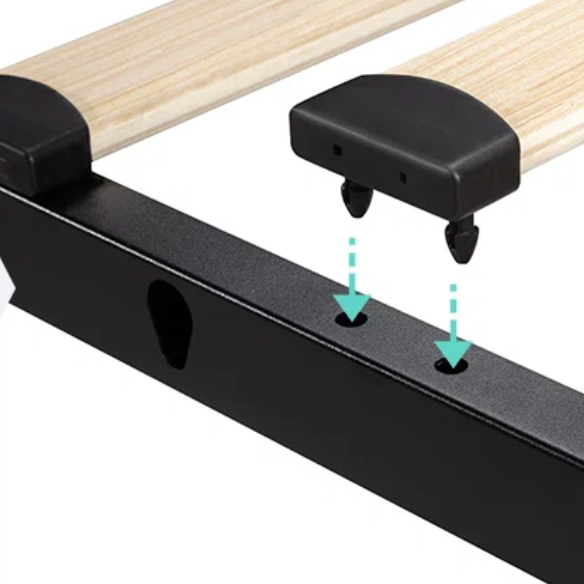 Built with a sturdy metal frame reinforced with solid and engineered wood, this bed is designed for long-lasting durability. A 12-slat system with center support legs ensures your mattress has strong, stable support—no box spring required.