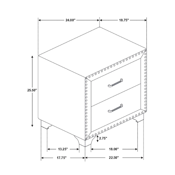 Nightstand: 24" W x 19.5" D x 25.5" H