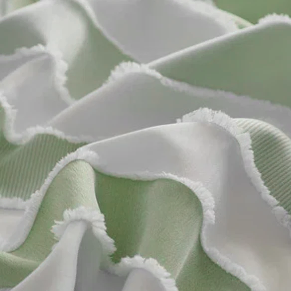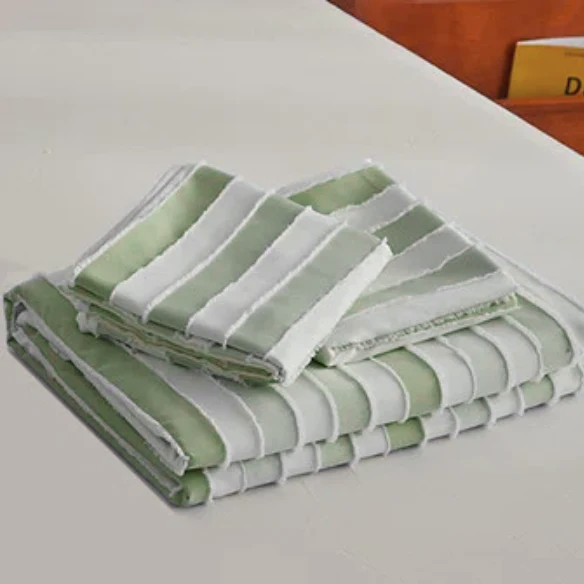 The green and white striped pattern with tufted texture offers a fresh, tailored appearance. Its subtle contrast brings depth and style to your décor, fitting effortlessly into coastal, farmhouse, or contemporary bedroom themes.