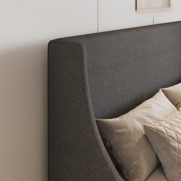Dark Grey Modern Wingback Upholstered Queen Platform Bed