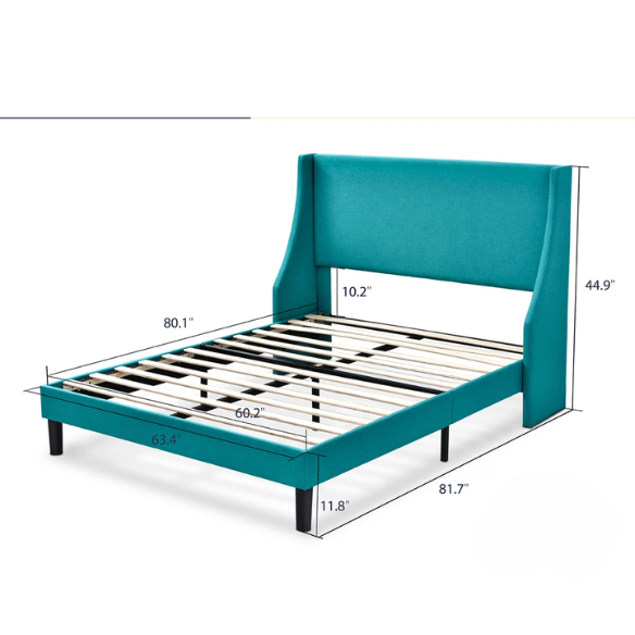 Teal Modern Wingback Upholstered Queen Platform Bed