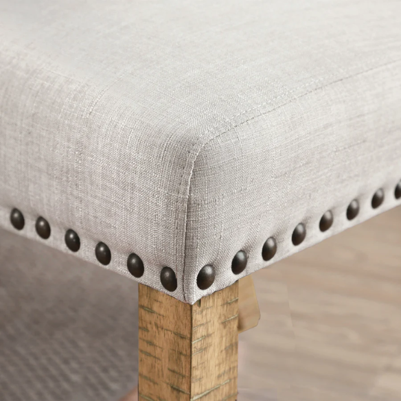 Add a refined touch of farmhouse charm to your dining space with this set of two Ivory Wingback Dining Chairs. Upholstered in a soft, linen-like fabric in a neutral ivory-beige tone, these chairs blend rustic warmth with elegant sophistication. The button-tufted backrest, classic wingback silhouette, and hand-applied nailhead trim create a stylish focal point, ideal for both casual and formal dining settings.