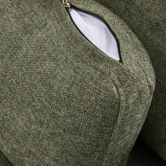Upholstered in a rich olive green linen-like chenille fabric, woven with variegated yarns for depth and texture. This warm, earthy hue resists everyday wear and adds timeless character to your space. -