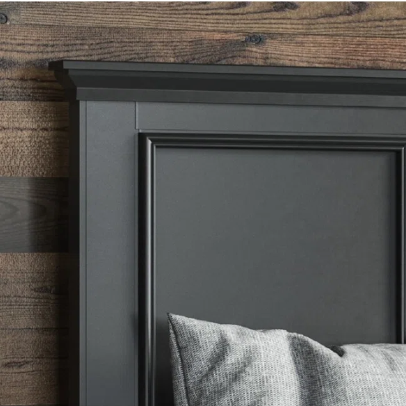 Bring timeless elegance into your bedroom with this black queen-sized bed, thoughtfully crafted to balance traditional charm with enduring quality. The rich black finish and raised panel detailing on the headboard and footboard exude classic sophistication, making this bed a striking centerpiece that suits both transitional and traditional décor.