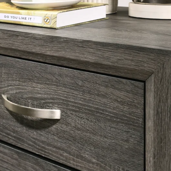 Bring rustic warmth and industrial style into your space with this 5-piece ash gray queen bedroom set, designed to transform your room into a cozy retreat. Crafted with wood and veneers in a brushed ash gray finish, this set blends the charm of a rustic cabin with sleek modern touches.