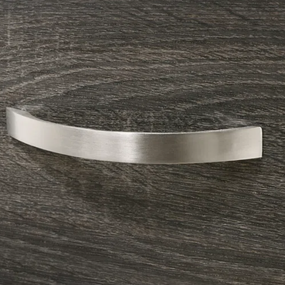 Metal Accents – Curved bar hardware adds a touch of industrial flair.