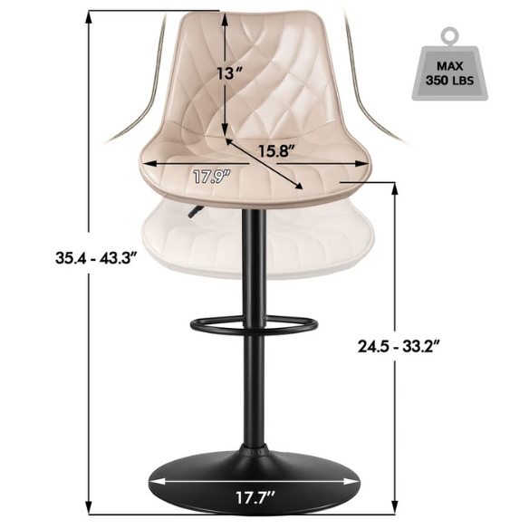 Adjustable Height & Swivel: Gas-lift adjustment allows seat heights from 22" to 31", with a 360° swivel function for flexibility and convenience.