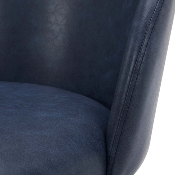 Bring modern sophistication to your kitchen island or bar area with this set of 2 Blue Counter Height Swivel Barstools. Inspired by mid-century style, these stools feature a gently rounded backrest and a streamlined silhouette that combines style with comfort. Upholstered in smooth blue faux leather, the seats are generously padded with high-density foam, providing lasting support for everyday dining and entertaining.